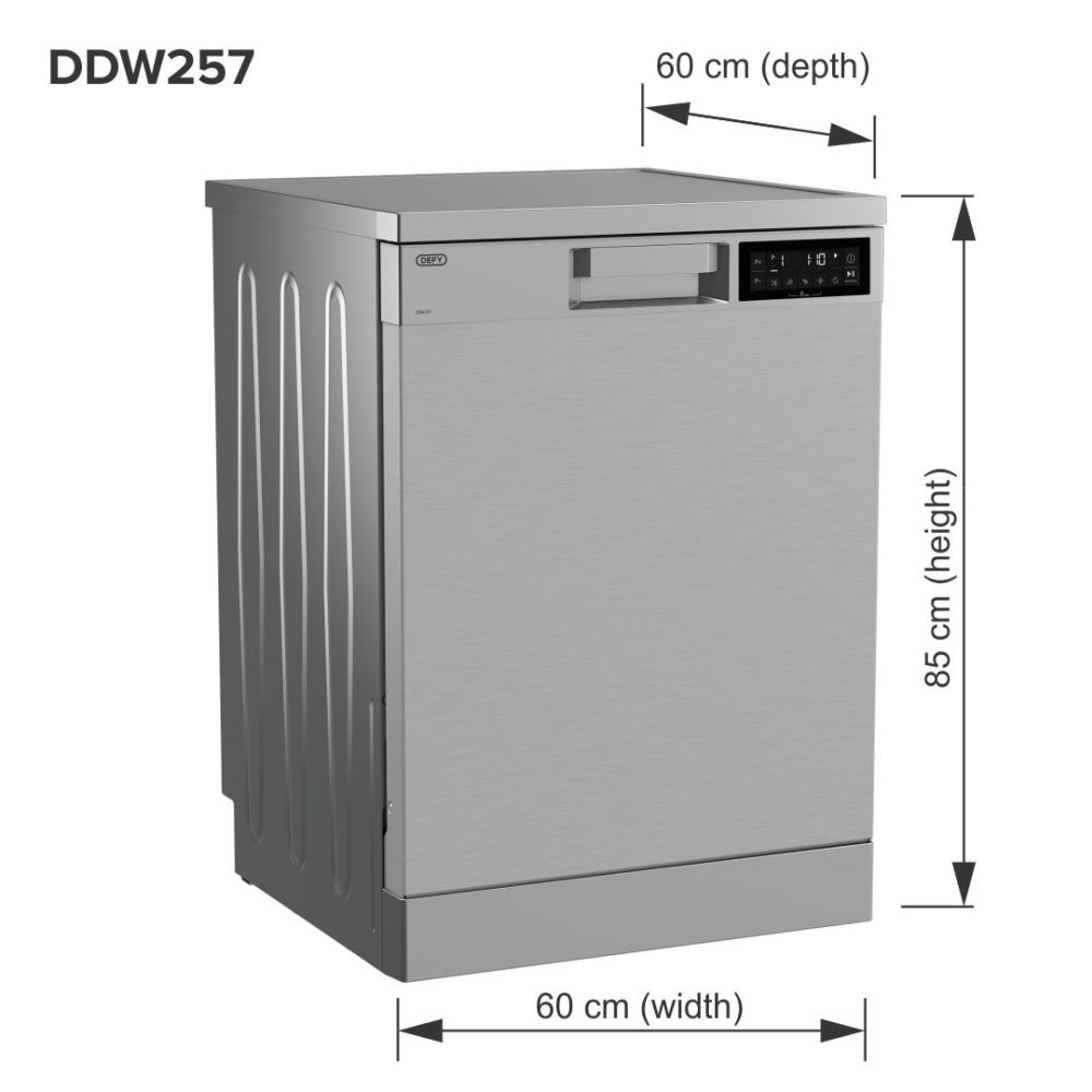 The Defy DDW257 is a high-capacity 15-place dishwasher built for larger households that require powerful performance with smart efficiency.