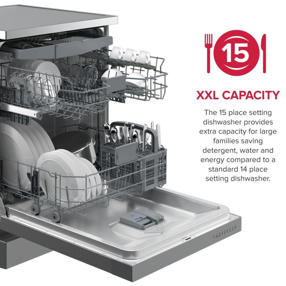 The Defy DDW257 is a high-capacity 15-place dishwasher built for larger households that require powerful performance with smart efficiency. Designed to handle bigger loads with ease, it combines advanced wash functionality with flexible interior options, while the fingerprint-proof Inox finish helps keep the exterior looking clean and smudge-free with minimal effort.