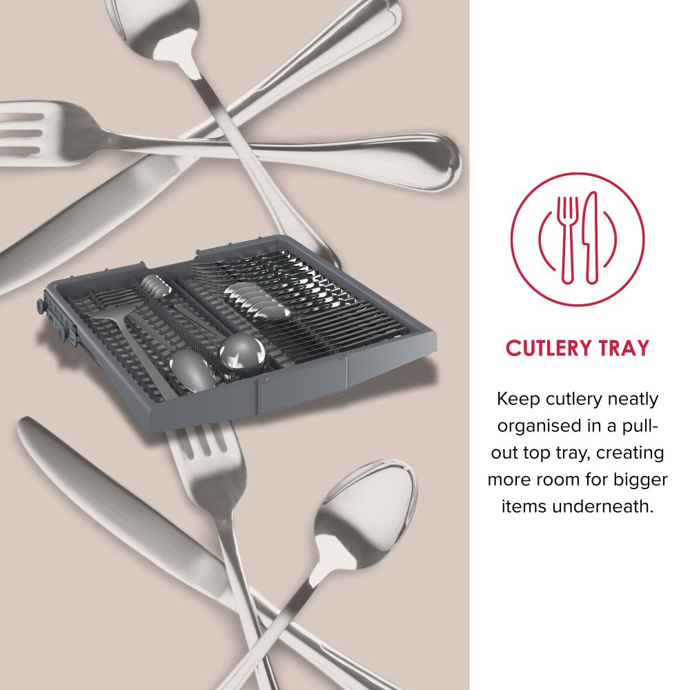 - Cutlery Tray & Cutlery Basket – Flexible loading options