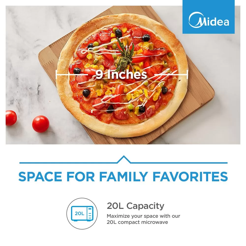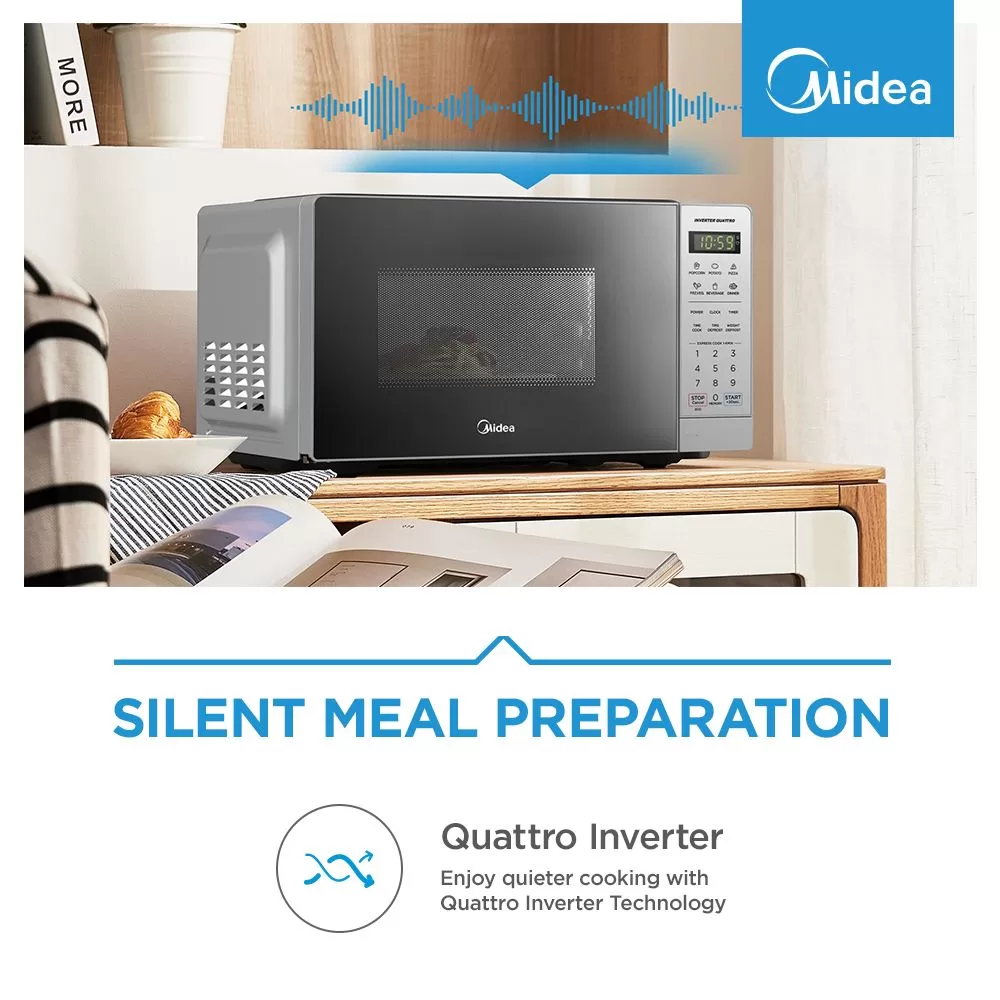 Midea EM20 Digital Smartwave Microwave Silver provides better cooking performance. Powered by an intelligent control system that adjust the power output using less energy, provides a quieter operation allowing you to cook in an environmental friendly way. The SMARTWAVE microwave adapts a wide voltage range of 170~270V It ensures unstable power supply will not damage the microwave.