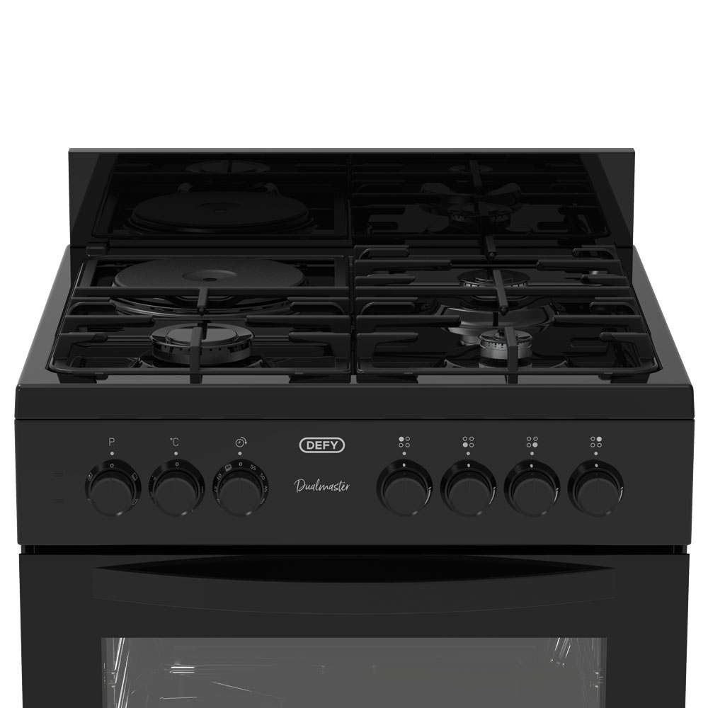The Defy – 4-Burner Gas Electric Stove Black – DGS679 is designed for busy kitchens where time and versatility matter. With three gas burners and one solid plate, you can cook multiple meals at once. Its 78L usable oven space makes it perfect for large family feasts or everyday cooking.