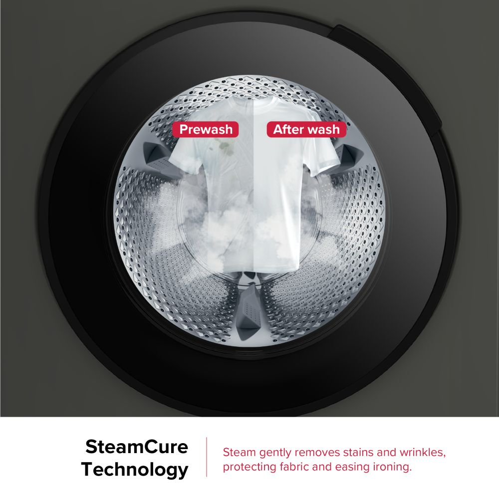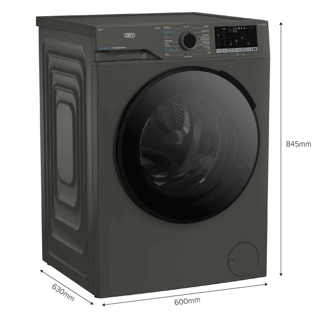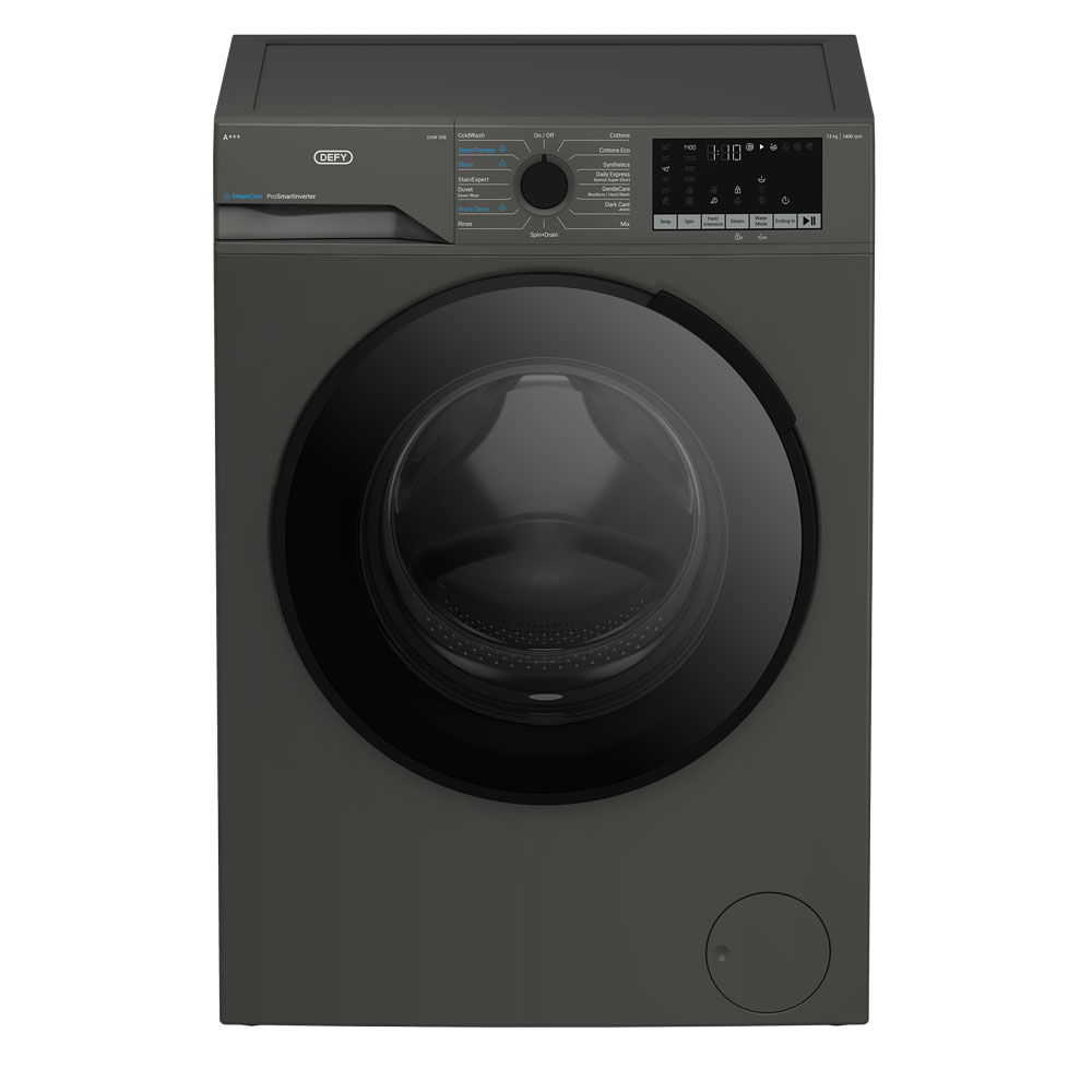 The Defy 12kg Manhattan Grey Front Loader Washing Machine has an A+++ energy rating, 15 programs and it has an integration of SteamCure technology.