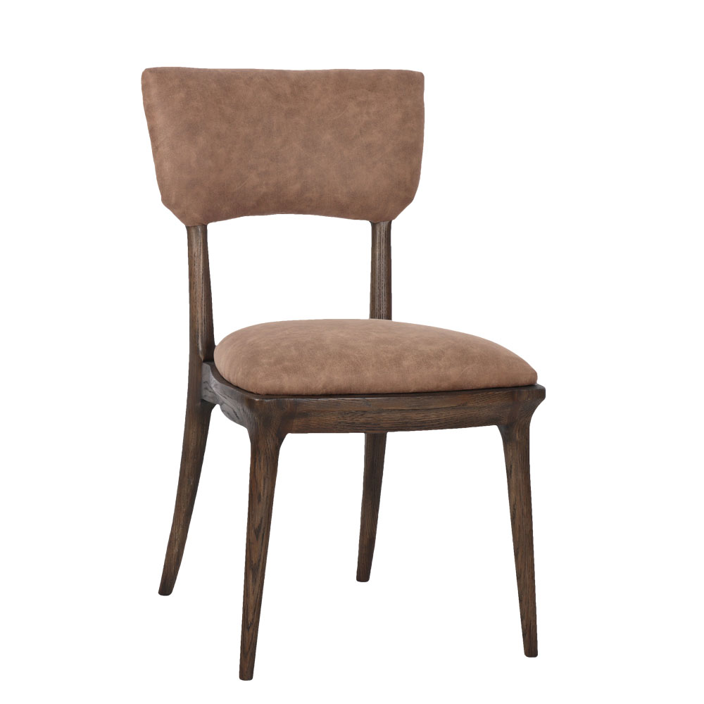 Elevate your dining experience with this Dining Chair. The Mid-Century Modern style chair features a plush brown upholstered seat and back.