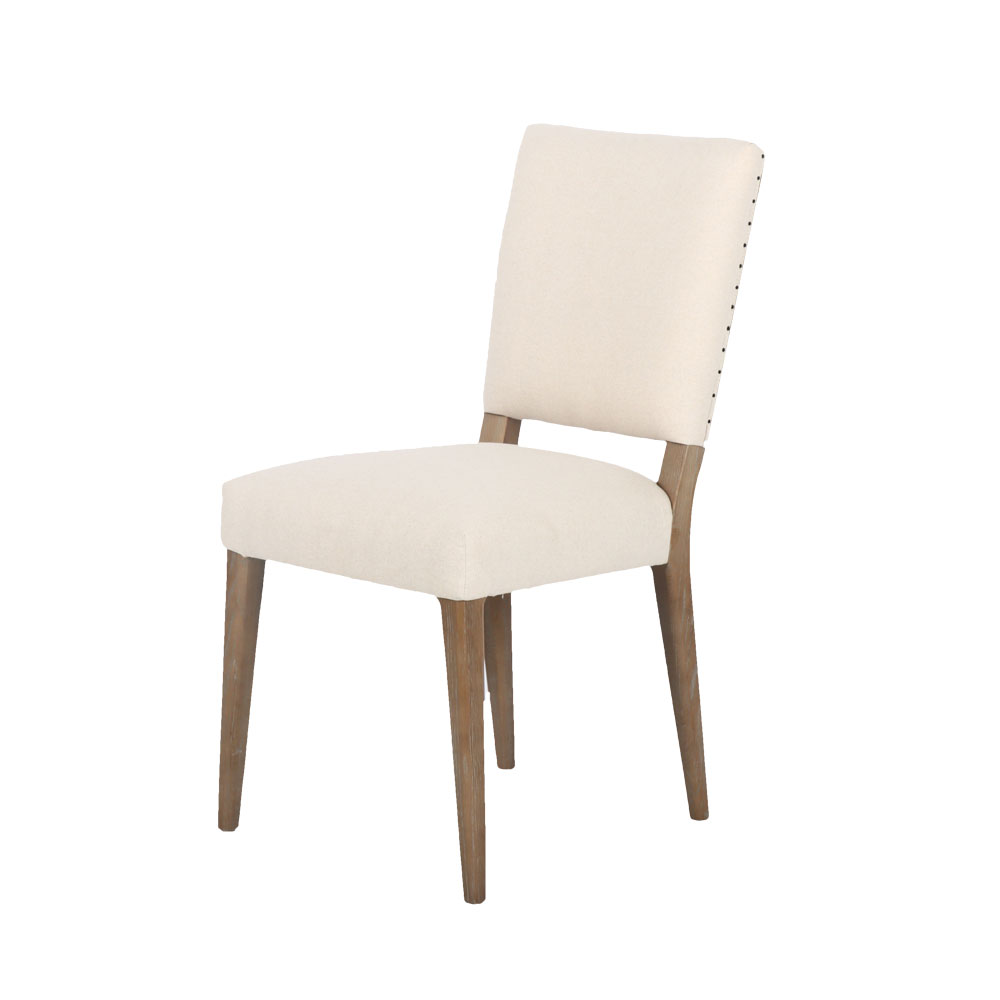 Elevate your dining experience with the Mowbray Dining Chair. This Mid-Century Modern piece combines luxurious design with practicality, making it a standout addition to your dining space. The soft cream upholstery features a subtle texture, adding a touch of elegance to any room.